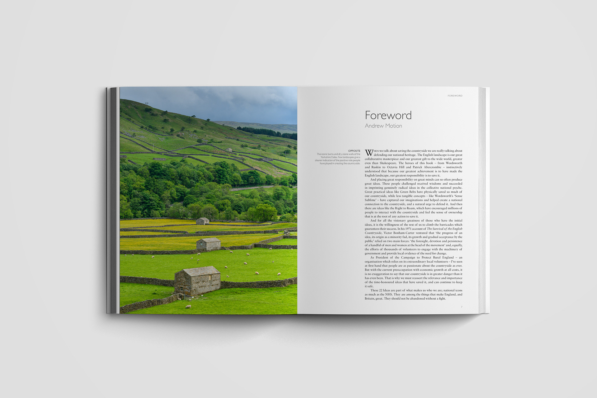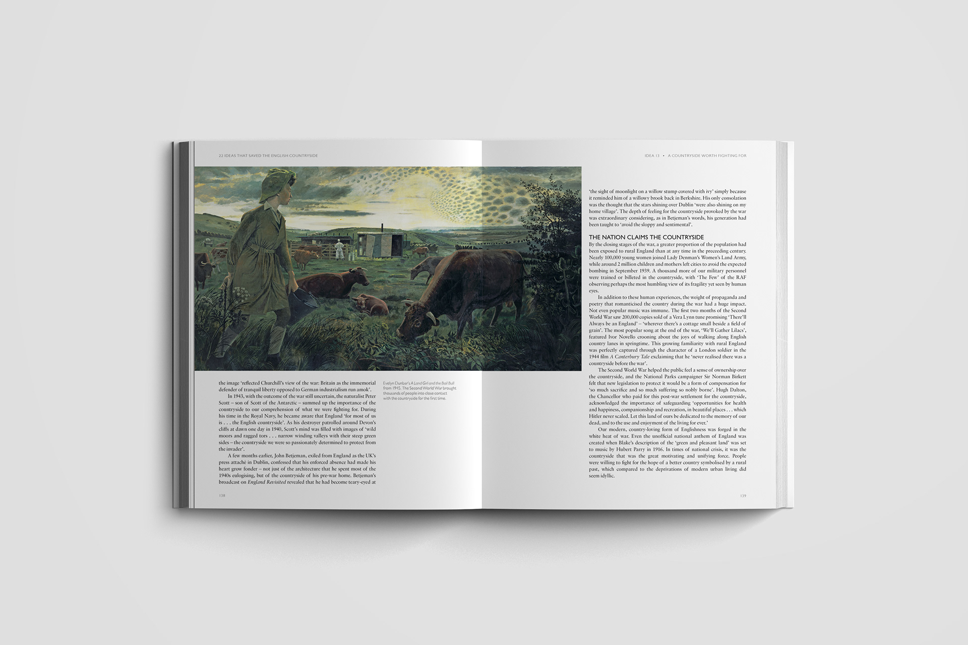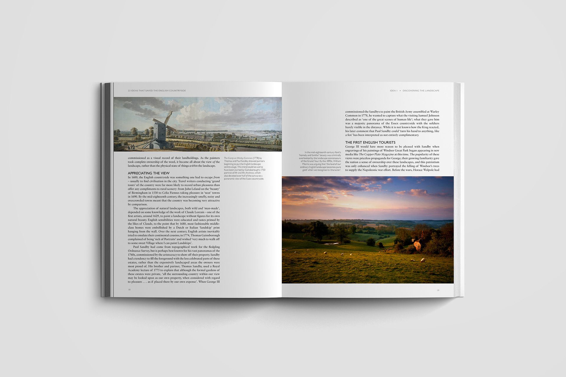 Editorial design for the cover and interior pages of 22 Ideas that Saved the English Countryside by Peter Waine and Oliver Hilliam. Published by Frances Lincoln.
