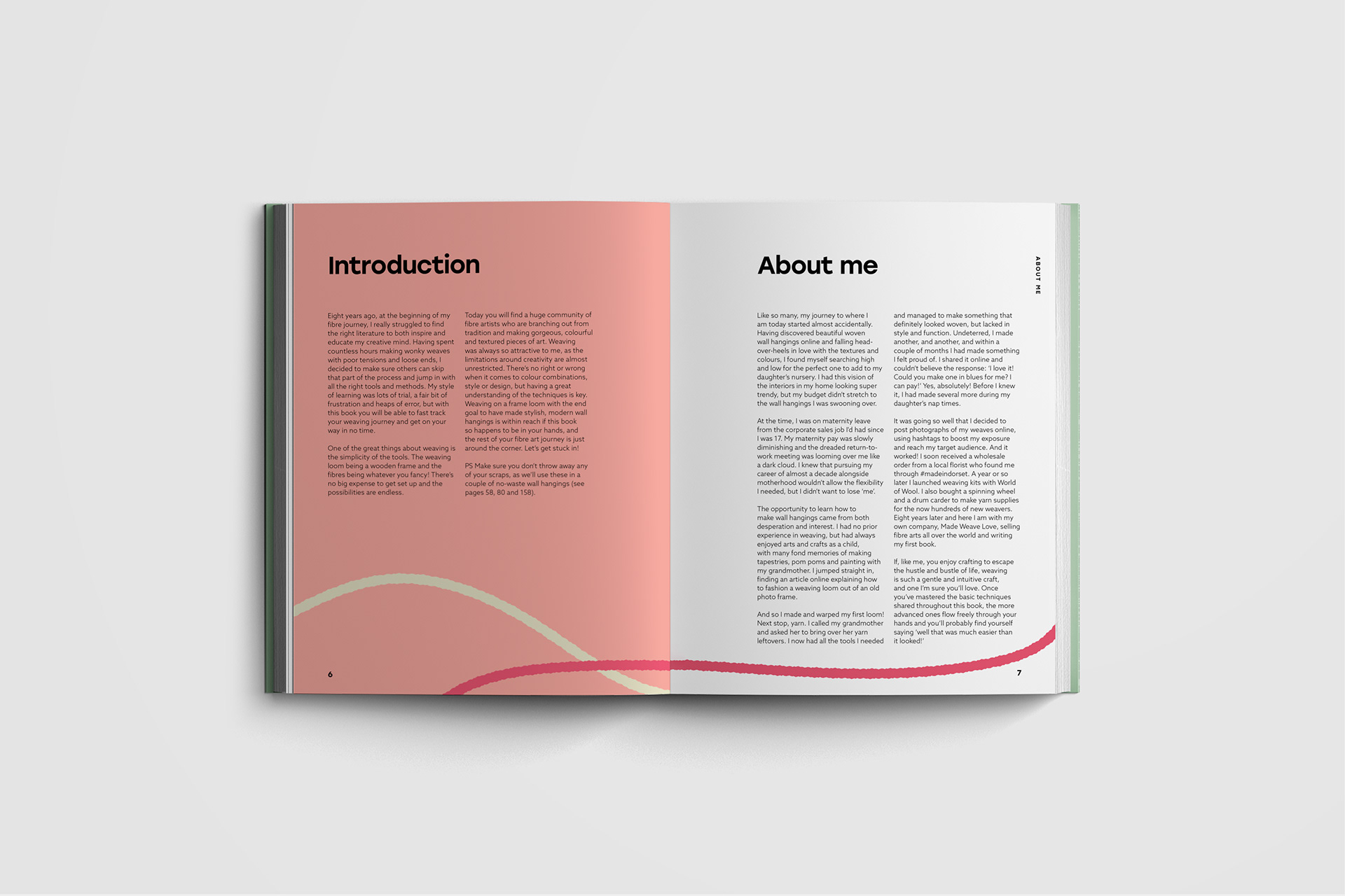 Editorial design and art direction for the cover and interior pages of Made Weave Love by Phoebe Jones. Published by Greenfinch.