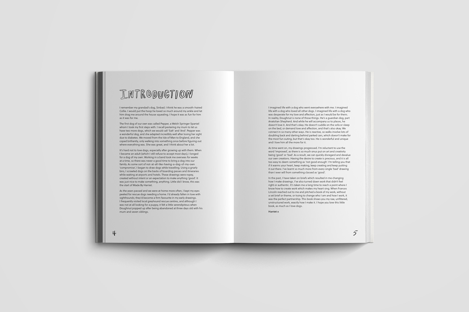 Editorial design for the cover and interior pages of Tell Your Dog I Love Them. Written and illustrated by Harriet Lowther. Published by Frances Lincoln.